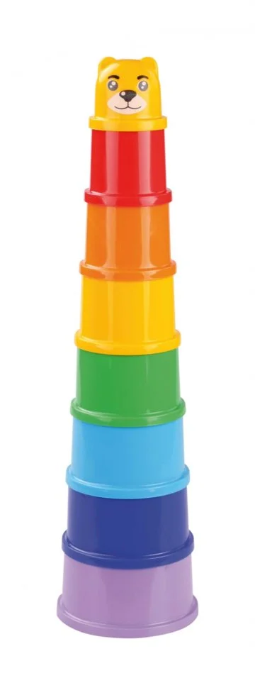 Пирамидка выполнена из высококачественного и безопасного пластика! Изделие состоит из восьми секций разного диаметра. Верхняя секция выполнена в виде головы медвежонка, что делает пирамидку более интересной для малыша. Остальные семь секций имеют форму стаканчика с отверстиями на дне. Эта конструкция позволит ребенку играть с изделием в ванной или в песочнице, наблюдая, как вытекает вода или высыпается песок. Также с помощью игрушки можно лепить куличики или вырезать кружки из пластилина. Пирамидка не занимает большого пространства при хранении, так как ее можно компактно сложить, вместив все детали внутри секции большего диаметра. Изделие легко промывается под проточной водой и не выцветает на солнце.