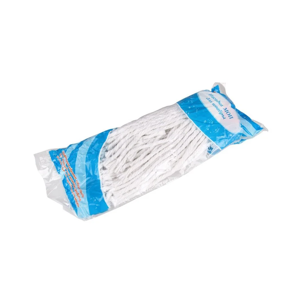 - Насадка для швабры подойдет для влажной уборки пола. Насадка имеет веревочный ворс и используется вместе с черенком. Такой ворс легко впитывает влагу и не оставляет разводов.