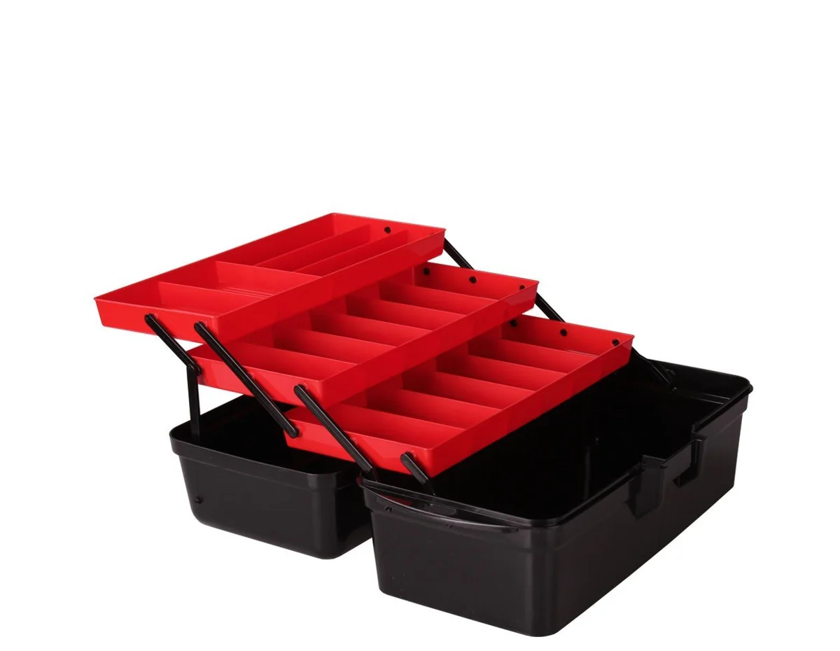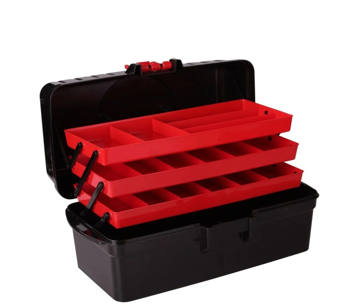 Ящик универсальный с крышкой предназначен для хранения мелких хозяйственных предметов, крепежей, метизов, небольших инструментов в одном месте. Благодаря раздвижной конструкции, в ящик вмещается три лотка, образовывая три яруса. Каждый лоток имеет несколько делений. Ящик оснащен двумя ручками по бокам и ручкой на крышке, для более удобной переноски ящика. Крышка плотно закрывается и фиксируется защелкой.