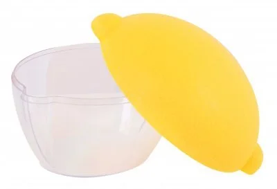Ёмкость для лимона предназначена для хранения фрукта в целом или нарезанном виде. Изделие состоит из прозрачного поддона и оригинальной крышки, которая по фактуре и цвету напоминает натуральный лимон. Крышка надежно защищает продукт от высыхания и препятствует проникновению посторонних запахов. Благодаря прозрачности стенок можно увидеть содержимое ёмкости, не открывая её. Данное изделие очень компактно, его легко можно разместить даже на дверце холодильника.