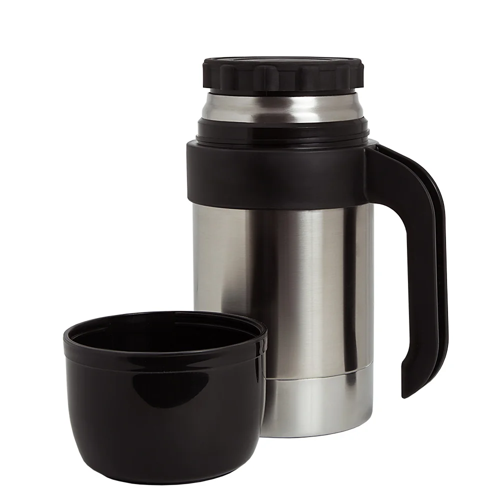 Наливается напиток в крышку-чашку, достаточно повернуть резьбовую пробку на пол-оборота. Кроме того, в универсальном термосе её используют в качестве чашки для первых и вторых блюд.