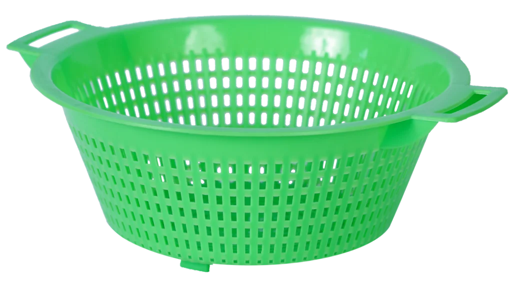 Дуршлаг с ручками для мытья продуктов, возможно использовать для изготовления сыра.
