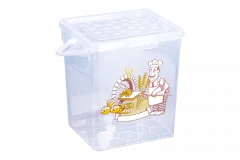 Глубокий контейнер с ручкой и плотно закрывающейся крышкой отлично подойдёт для хранения муки, сахара и других сыпучих проуктов.