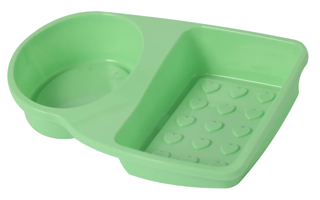 Мыльница состоит из двух секций, что позволяет использовать её не только для хранения мыла, но и как подставку для губки или моющего средства.