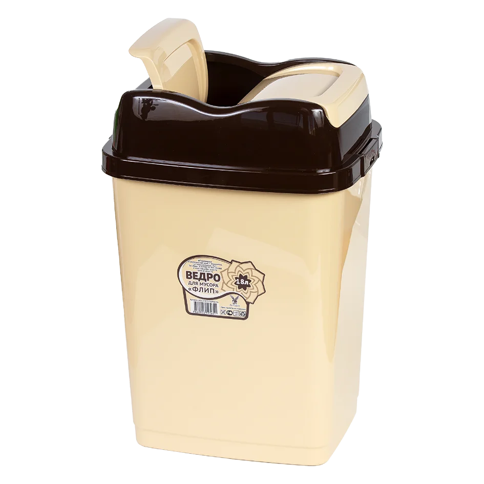 Ведро для мусора «Флип» 18л бежево-шоколадное (артикул А024) от бренда «Ар-Пласт» — это большое ведро с двойной крышкой-поплавком. Подходит для использования на кухне, в ванной, туалете и любых других помещениях.