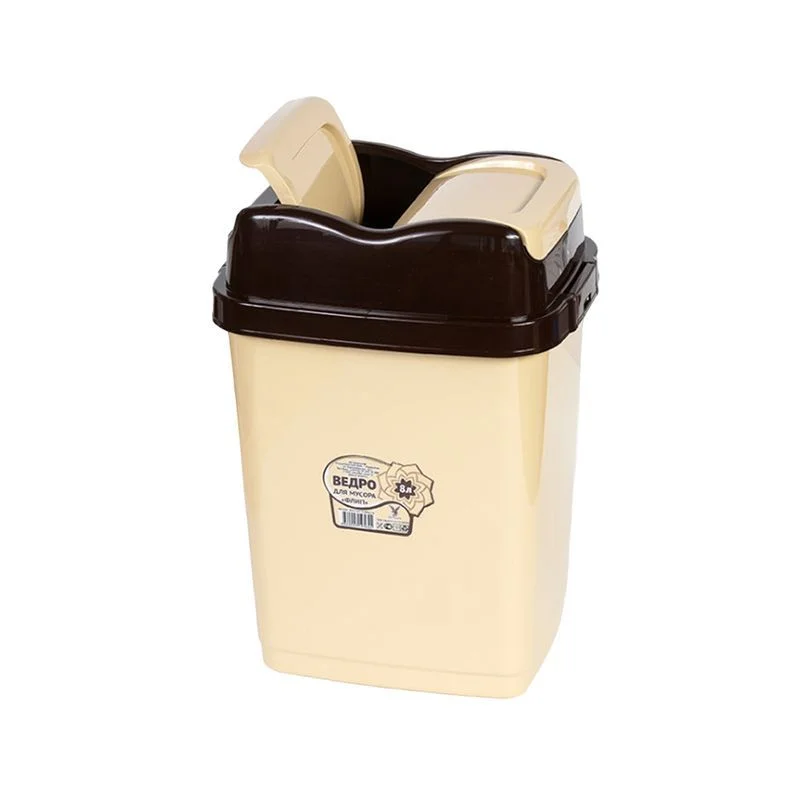 Ведро для мусора «Флип» 8л (бежево-шоколадный) артикул А023 от производителя «Ар-Пласт» — небольшое ведро с двойной крышкой-поплавком. Подходит для использования на кухне, в ванной, туалете и любых других помещениях.