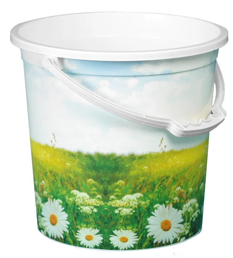 Прочное ведро с красивой яркой аппликацией.