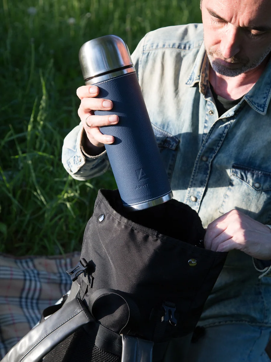 Стильный термос, который будет уместен как в походном рюкзаке, так и в дамской сумочке. Приятное на ощупь покрытие оплетки, имитирующее рисунок кожи канадского бизона, защищает термос от отпечатков и служит дополнительным термослоем. Оплетка легко снимается, если термос нужно промыть и просушить.