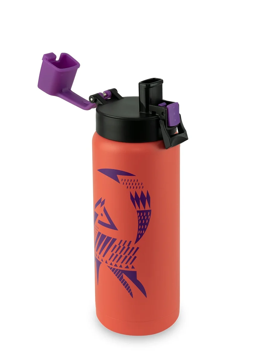 Специальный колпачок защищает носик для питья от пыли. Выполнен из долговечной пищевой нержавеющей стали. В линейке представлены 11 оригинальных дизайнов, чтобы каждый мог выбрать для себя подходящую расцветку и подчеркнуть свою индивидуальность.