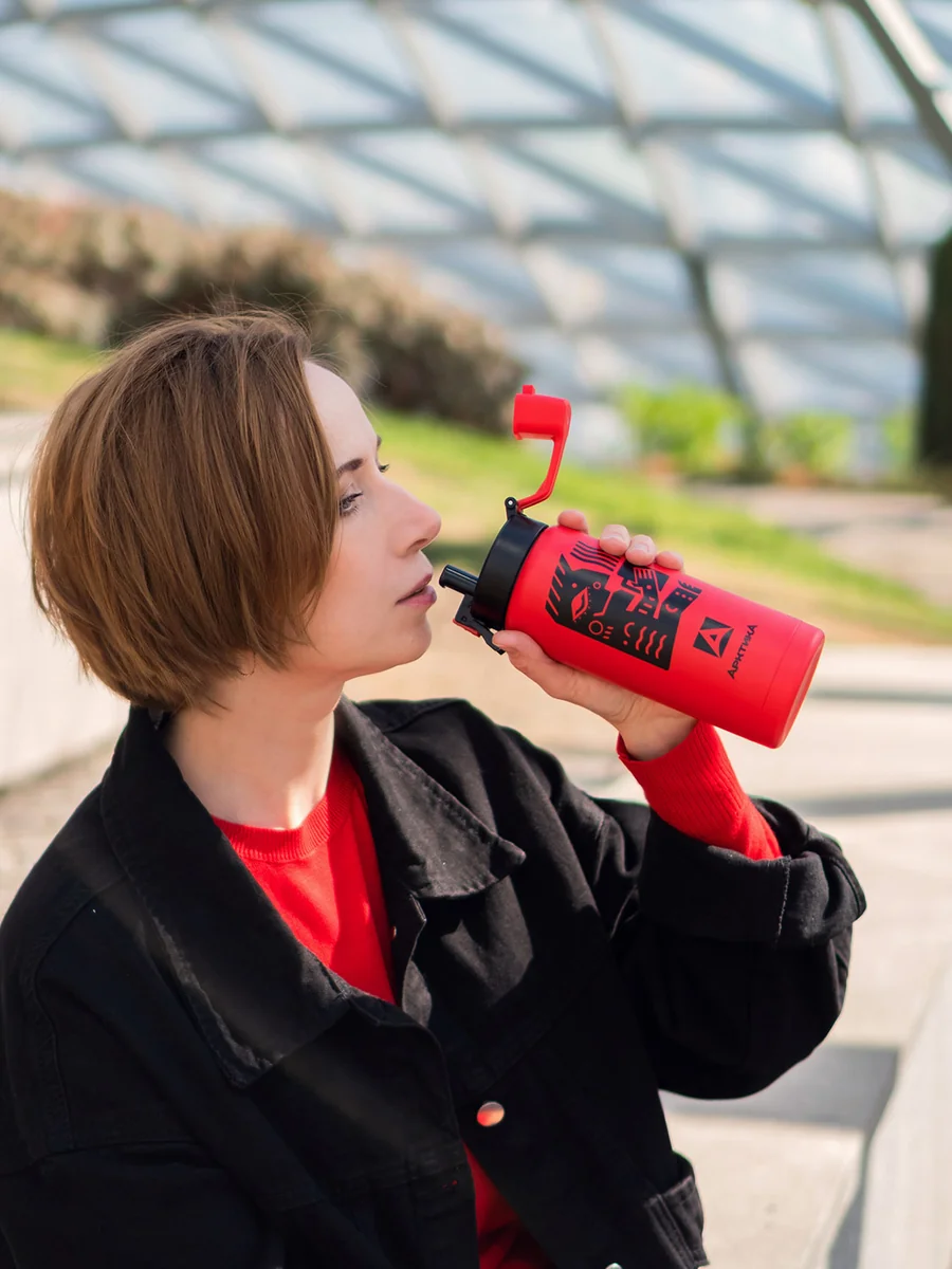Специальный колпачок защищает носик для питья от пыли. Выполнен из долговечной пищевой нержавеющей стали. В линейке представлены 11 оригинальных дизайнов, чтобы каждый мог выбрать для себя подходящую расцветку и подчеркнуть свою индивидуальность. Гарантия на вакуум – 5 лет.