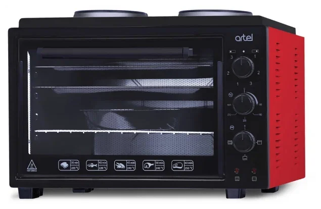 Мини-печи Artel оснащены электрическими конфорками. На верхней панели прибора находятся две чугунные конфорки. Теперь вы можете не только жарить, печь или тушить, но и одновременно готовить различные вкусные супы!