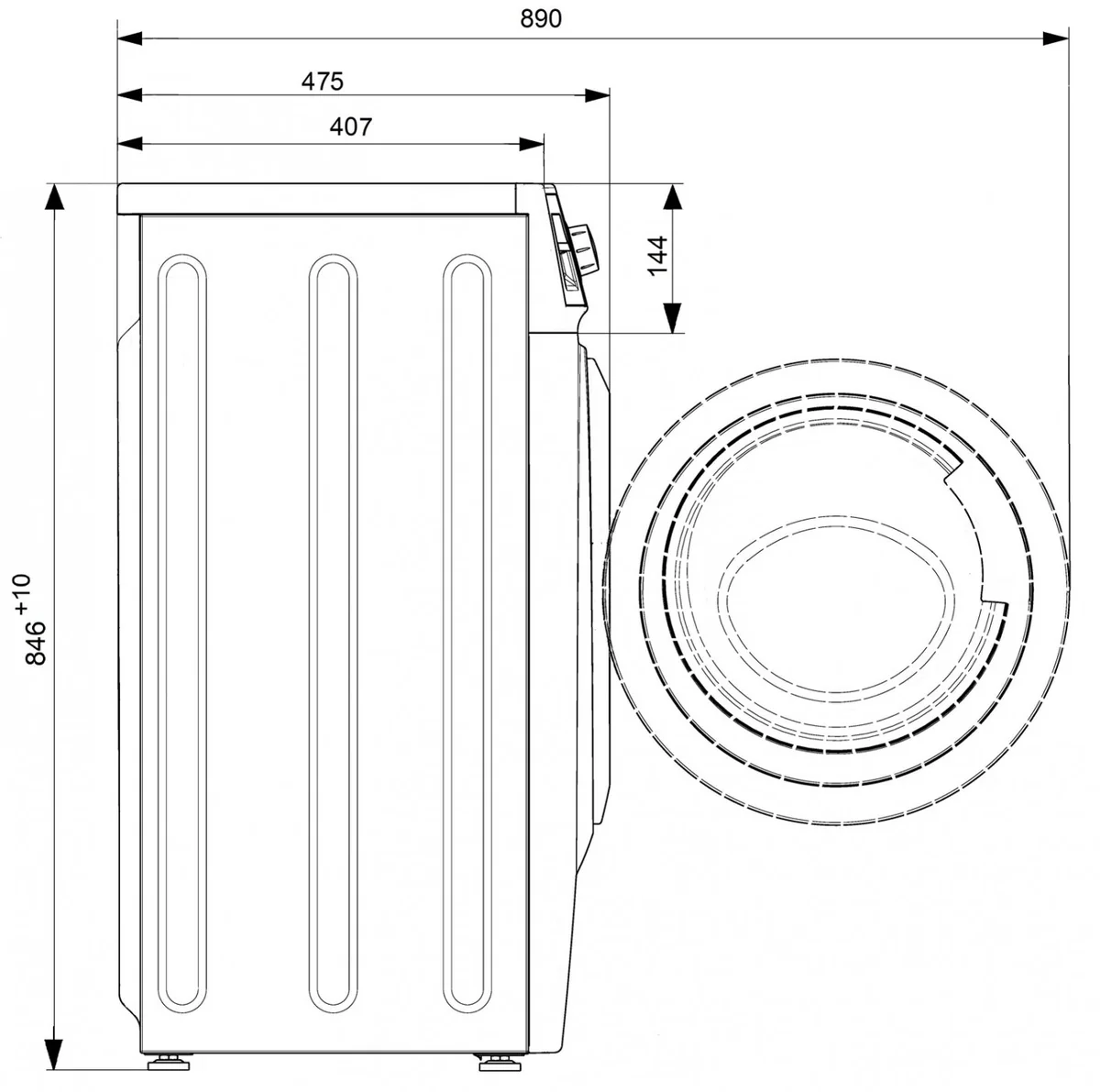 - Глубина по корпусу - 407 мм