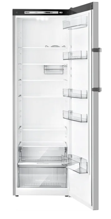 - на двери установлено 5 ёмкостей из ударопрочного пластика, в том числе ёмкость нижняя с ограничителем для бутылок и ёмкость верхняя с крышкой.
