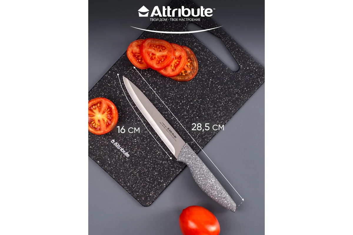 Нож Attribute Knife "Stone" идеально шинкует, нарезает и измельчает продукты. Он займет достойное место среди аксессуаров на вашей кухне.