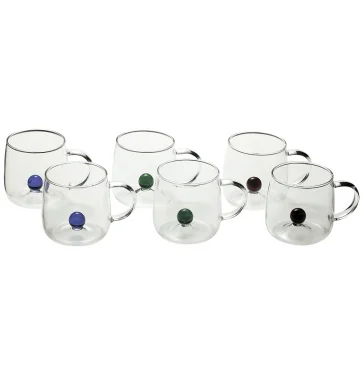 Набор кружек 6 предметов BACKMAN BM-0402 250 мл , корпус из термостойкого боросиликатного стекла, декоративный элемент из цветного стекла на дне, подарочная упаковка.