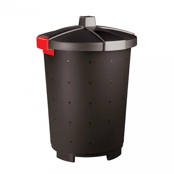 Прочный пластиковый бак для бытового мусора объемом 45 литров может использоваться как в помещениях, так и на улице. Благодаря надежным застежкам его плотно прилегающая крышка не пропустит наружу неприятные запахи.