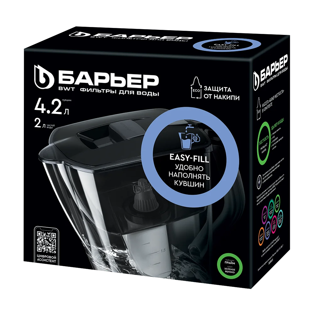 С фильтрами БАРЬЕР вам не придется запоминать размер или диаметр сменной кассеты: любая кассета БАРЬЕР подходит ко всем фильтрам-кувшинам БАРЬЕР.