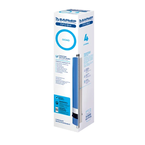 - Сменный картридж для обратноосмотического водоочистителя «Профи Осмо». Удаляет практически все загрязнения которые встречаются в составе проточной воды. Картридж для фильтра устанавливается в четвертую ступень системы водоочистки.