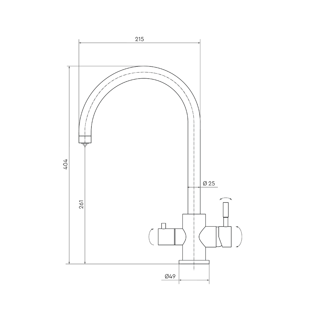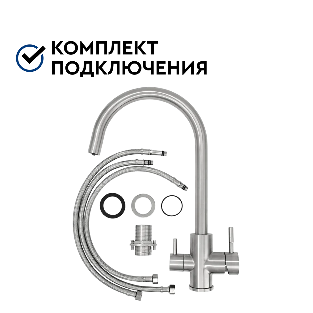 Удобный смеситель из нержавеющей стали экономит пространство на кухне за счет возможности подачи водопроводной и очищенной воды в одном кране.
