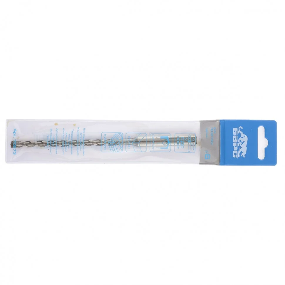Бур по бетону Барс 70573 размером 6 х 160 мм, Luxembourg TIP, используется в качестве оснастки с перфораторами SDS Plus. Он подходит для бурения отверстий в бетоне, кирпиче, натуральном и искусственном камне. Бур может применяться на стройках, во время ремонтных, монтажных/демонтажных и иных работ как любителями, так и профессионалами.ПреимуществаМаксимальная результативность — центрирующая головка бура позволяет с высокой точностью и чистотой сверлить не только бетон, но и особо твердые материалы.Высокое качество — режущая пластина изготовлена из твердосплавной стали ВК8 80-90 HRC одним из мировых лидеров по производству твердосплавных изделий.Прочность и стойкость к динамическим нагрузкам — рабочая спиральная часть выполнена из легированной стали 40Х и термически обработана до необходимой твердости.Надежность — пластина автоматически припаяна тугоплавким материалом, который обеспечивает высокую механическую прочность соединения.