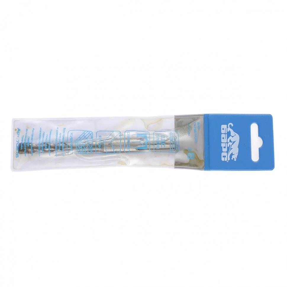 Бур по бетону Барс 70576 размером 8 х 110 мм, Luxembourg TIP, используется в качестве оснастки с перфораторами SDS Plus. Он подходит для бурения отверстий в бетоне, кирпиче, натуральном и искусственном камне. Бур может применяться на стройках, во время ремонтных, монтажных/демонтажных и иных работ как любителями, так и профессионалами.ПреимуществаМаксимальная результативность — центрирующая головка бура позволяет с высокой точностью и чистотой сверлить не только бетон, но и особо твердые материалы.Высокое качество — режущая пластина изготовлена из твердосплавной стали ВК8 80-90 HRC одним из мировых лидеров по производству твердосплавных изделий.Прочность и стойкость к динамическим нагрузкам — рабочая спиральная часть выполнена из легированной стали 40Х и термически обработана до необходимой твердости.Надежность — пластина автоматически припаяна тугоплавким материалом, который обеспечивает высокую механическую прочность соединения.