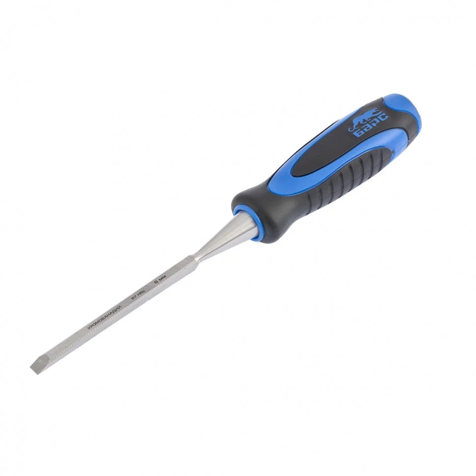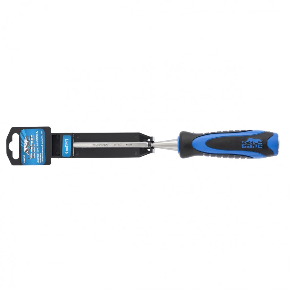 Долото-стамеска, плоская, 6 мм, двухкомпонентная рукоятка, металлический затыльник Барс 24631
