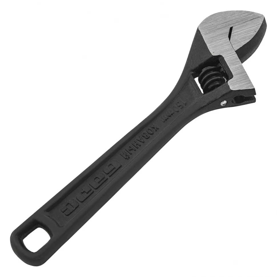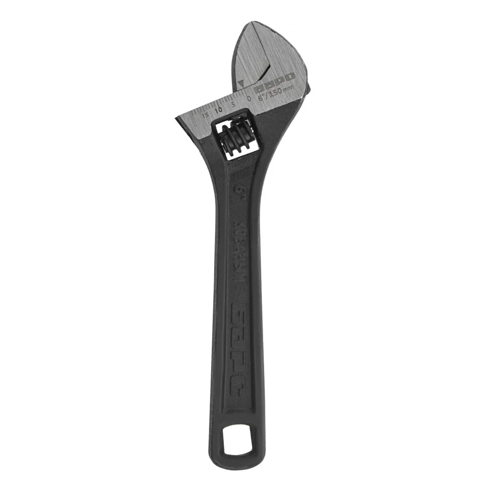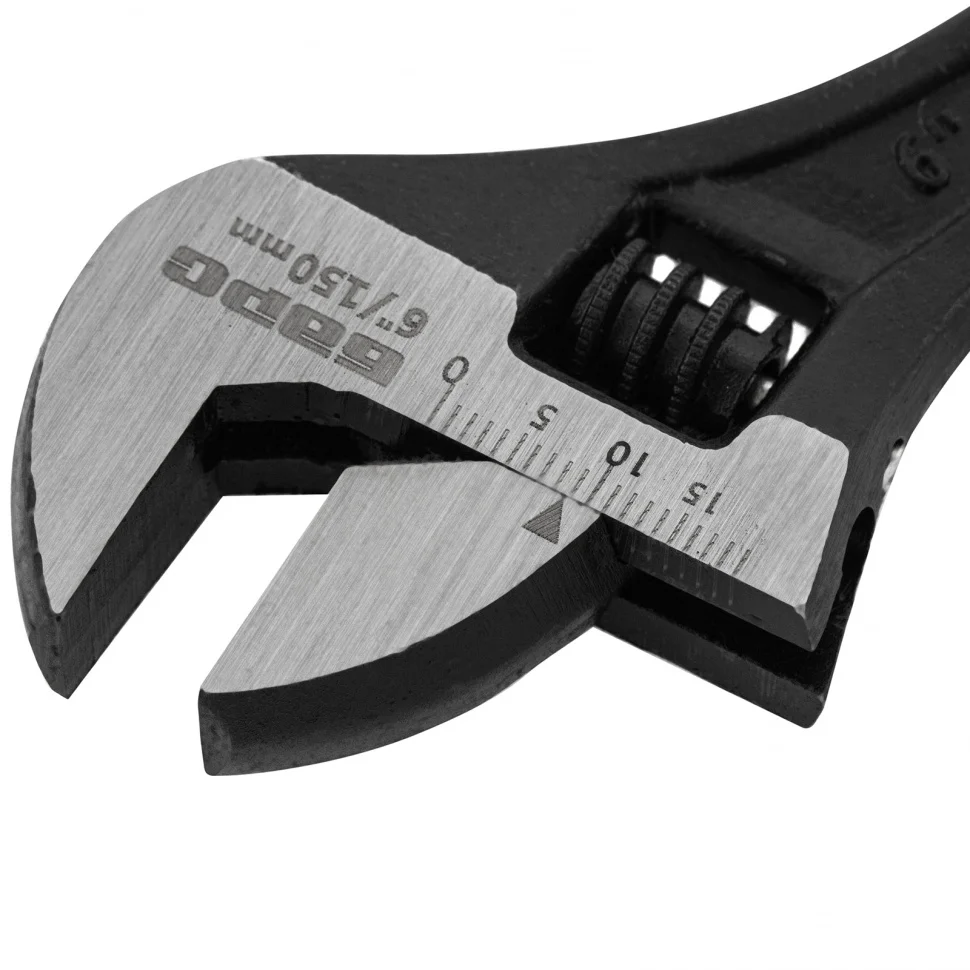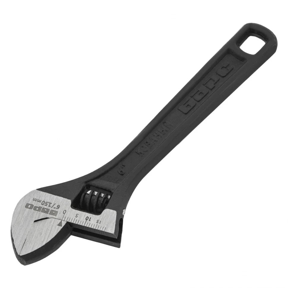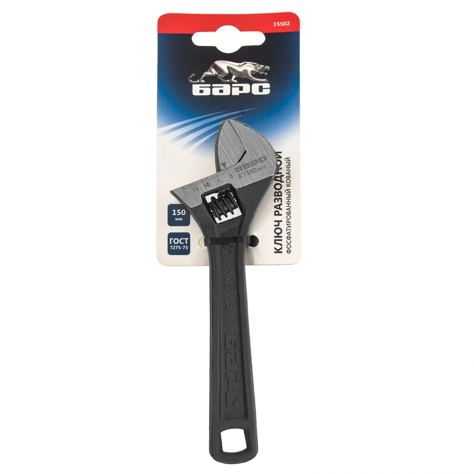 Разводной ключ Барс 15502, 150 мм, заменяет собой целый комплект обычных гаечных ключей. Он используется для монтажа и демонтажа крепежных элементов. Губки можно разводить на точно заданное расстояние, что позволяет подкручивать детали различного размера. Разводной ключ пригодится при проведении слесарных, сантехнических, ремонтных работ.ПреимуществаКлюч обладает высокой прочностью благодаря усиленной конструкции и качественному материалу изготовления — хромованадиевой стали, подвергнутой закалке.Фосфатное покрытие червячного винтового механизма придает ему устойчивость к образованию коррозии и износу.Мерная шкала на губке повышает точность проводимых работ.Обливная рукоятка с отверстием для подвесного хранения надежно и удобно ложится в руку.