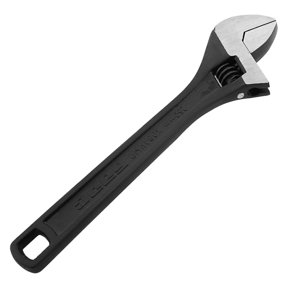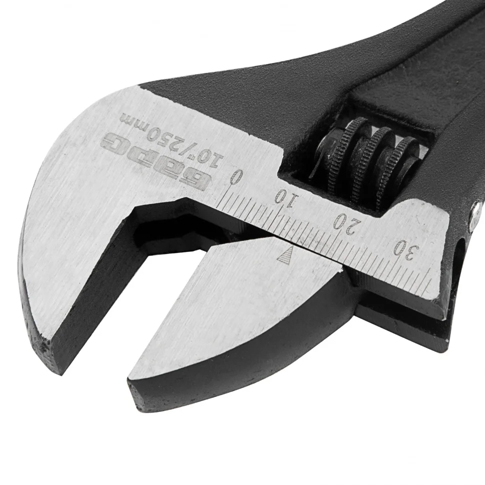 Разводной ключ Барс 15506, 250 мм, заменяет собой целый комплект обычных гаечных ключей. Он используется для монтажа и демонтажа крепежных элементов. Губки можно разводить на точно заданное расстояние, что позволяет подкручивать детали различного размера. Разводной ключ пригодится при проведении слесарных, сантехнических, ремонтных работ.ПреимуществаКлюч обладает высокой прочностью благодаря усиленной конструкции и качественному материалу изготовления — хромованадиевой стали, подвергнутой закалке.Фосфатное покрытие червячного винтового механизма придает ему устойчивость к образованию коррозии и износу.Мерная шкала на губке повышает точность проводимых работ.Обливная рукоятка с отверстием для подвесного хранения надежно и удобно ложится в руку.