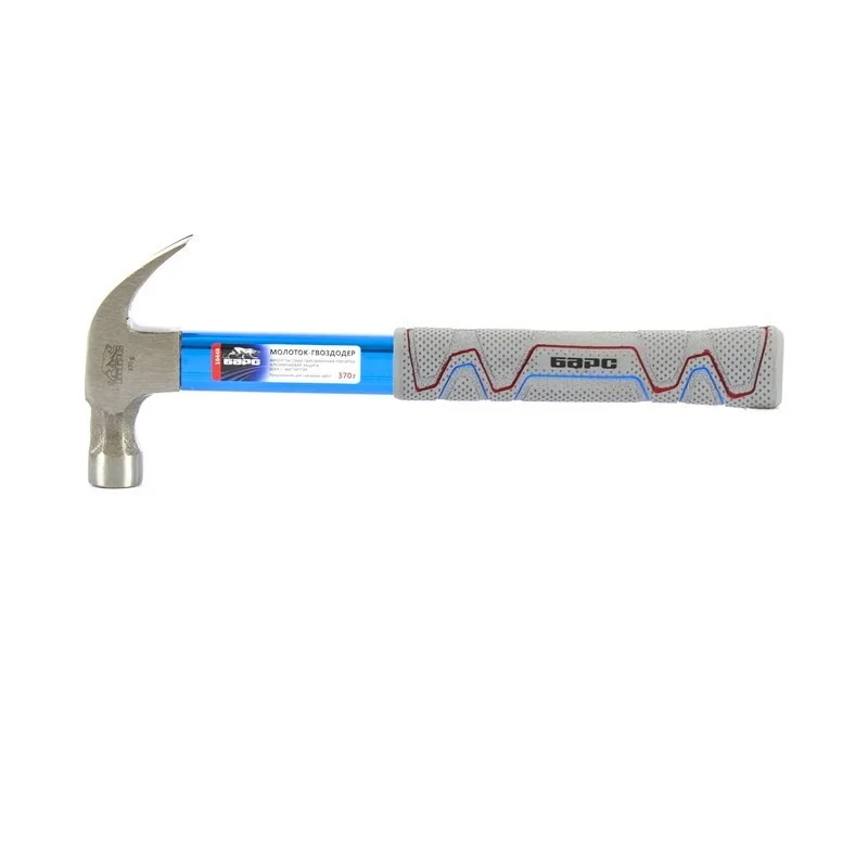 Молоток-гвоздодер 370 г, боек с магнитом, фибергласовая обрезиненная рукоятка, алюминиевая защита Барс 10448