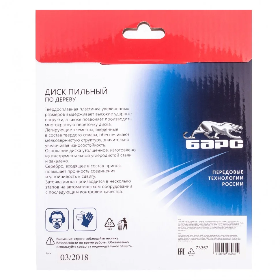 Пильный диск Барс 73357, ф160 х 20 мм, с 24 зубьями и кольцом 20/16 мм предназначен для быстрого пиления древесины мягких и твердых пород, ДСП, МДФ и фанеры. Тип зубьев АТВ и оптимально подобранный угол зуба позволяют производить как продольный, так и поперечный распил. Диск используется совместно с торцовочными и циркулярными пилами с посадкой 20 мм. В комплект входит переходное кольцо на диаметр 16 мм, расширяющее возможности применения оснастки. Диск подходит для интенсивной эксплуатации и может использоваться в профессиональной сфере.ПреимуществаПовышенная износостойкость - пластины изготовлены из сплава YG8 твердостью свыше 88 HRА с добавлением легирующих компонентов, формирующих мелкозернистую структуру материала.Надежность - корпус диска выполнен из инструментальной стали твердостью 42 HRC и устойчив к деформациям.Долгий срок службы - увеличенные твердосплавные пластины выдерживают ударные нагрузки и позволяют многократно проводить заточку диска.Прочное соединение пластин с зубьями - для пайки используется комбинированный припой с высоким содержанием серебра.Компенсационные прорези - диск не деформируется при нагревании и позволяет получать стабильно ровный срез.