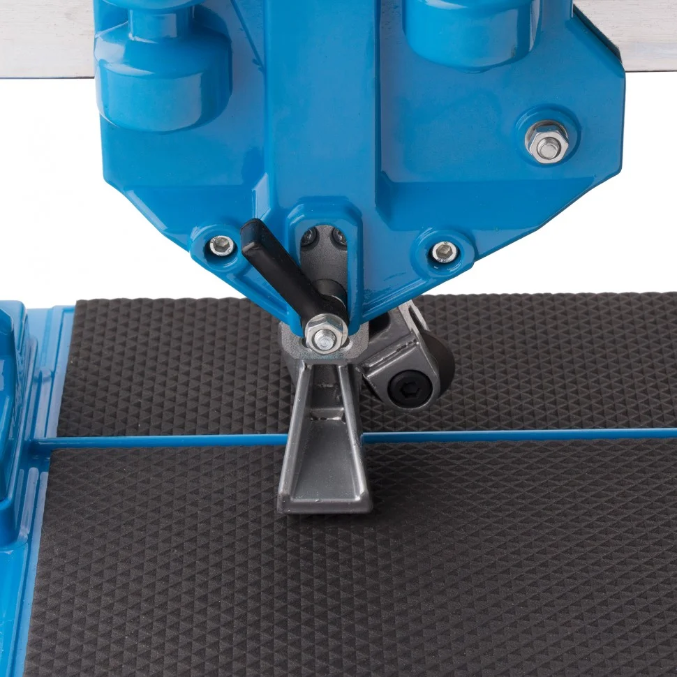 Ручной монорельсовый плиткорез Барс 87590 с ходовой кареткой, с 4 регулируемыми подшипниками из 9 и литой станиной применяется мастерами для резки плитки размером до 600 х 14 мм. Плиткорез оснащен усиленным стальным монорельсом и опорами. Мощный разделитель справляется с резкой любой плитки: керамической и керамогранитной.ПреимуществаРежущий ролик мягко и ровно режет материалы, т.к. выполнен из твердого сплава ВК-8.Литая станина из магниевого сплава повышает жесткость и устойчивость конструкции.Конструкция плиткореза позволяет производить разлом в любой точке поверхности плитки.Металлическая линейка с угломером позволяет соблюдать размеры с максимальной точностью и резать плитку под углом до 60 градусов.Переключатель помогает быстро переключать ролик с положения для резки на режим плитколома.Ходовая каретка имеет 9 подшипников, 4 из которых регулируются, поэтому она плавно и свободно перемещается по рельсу, обеспечивая высокое качество реза.Амортизирующие накладки обеспечивают надежное удержание плитки во время реза.