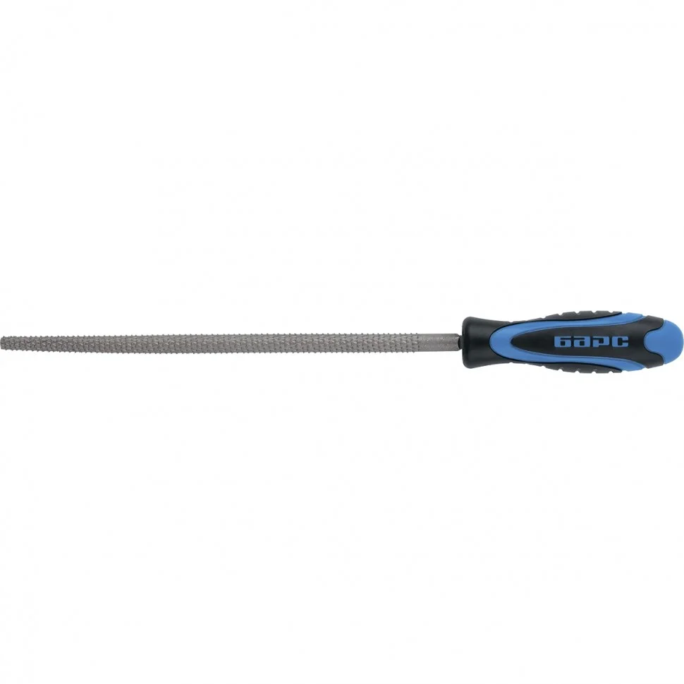 Круглый рашпиль Барс 15862 с двухкомпонентной рукояткой имеет рабочую часть длиной 250 мм и предназначен для первичной обработки изделий из пластика и металла. Им можно опиливать детали со сложной поверхностью, придавая им необходимую форму или размер, устраняя заусенцы и неровности. Рашпиль обеспечивает высокую производительность работ за счет агрессивной заточки №2. Инструмент используется в столярных мастерских, также будет полезен в быту.ПреимуществаРашпиль изготовлен из среднеуглеродистой стали 45, поэтому устойчив к нагрузкам и подходит для интенсивного применения.Твердость рабочей поверхности составляет 45-50 HRC, чем обусловлено длительное сохранение инструментом режущих свойств.Эргономичная двухкомпонентная рукоятка с рельефными вставками не выскальзывает из ладони, что обеспечивает комфорт во время работы.