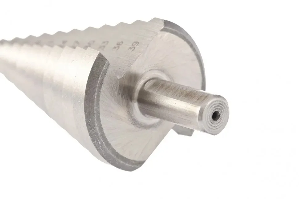 - Конусное сверло имеет трехгранный хвостовик, поэтому не проворачивается в патроне.