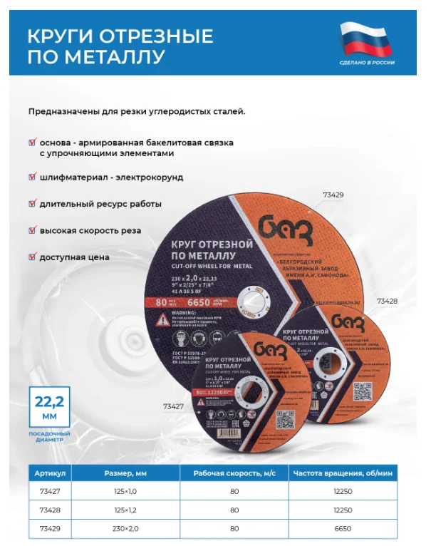 Отрезные круги по металлу » БАЗ Круг отрезной по металлу, 230 х 2,0 х 22,2 мм 73429 Круг отрезной по металлу, 230 х 2,0 х 22,2 мм (БАЗ) Россия 73429 Производитель: БазНаружный диаметр: 230Толщина: 1Наличие: На пятницуБонусы: 4 ₽ Код товара: 81175 Цена: 188 ₽ В корзину Описание Группа товаров Ручной инструмент Диаметр, мм 230 Страна производства Россия Толщина, мм 2 Поделитесь ссылкой:
