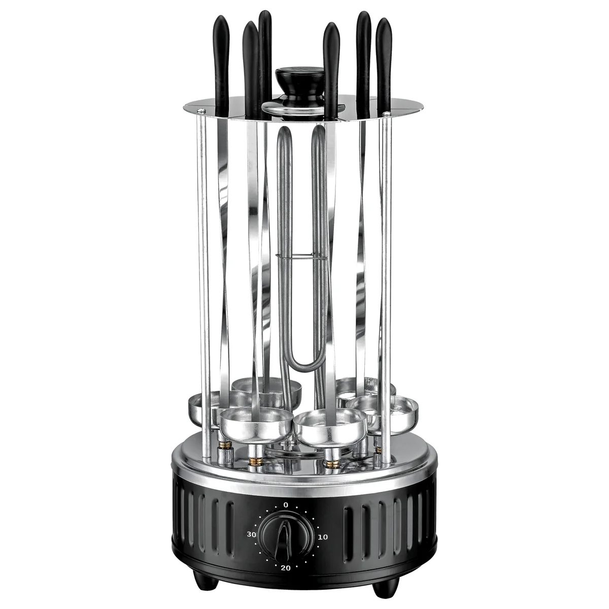 - Автоматическое вращение шампуров обеспечивает равномерное обжаривание мяса со всех сторон.