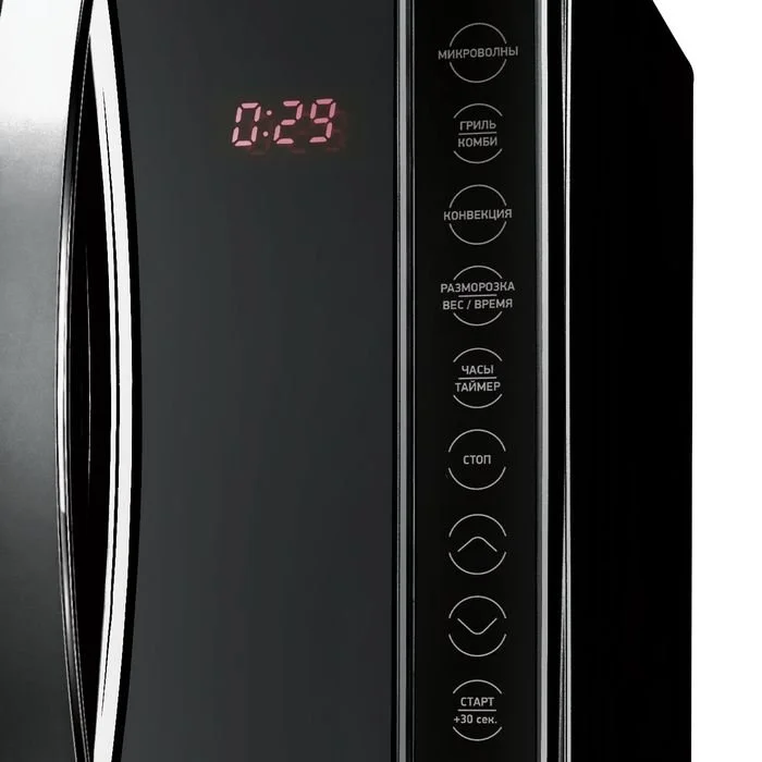 и рыбу, а благодаря конвекции получится великолепный румяный пирог! Мощность гриля в камере объемом 23 литра составляет 1200 Вт, микроволн — 800 Вт, причем существует 5 уровней регулировки мощности. Электронное управление значительно облегчает эксплуатацию. Это оптимальные показатели для использования в кулинарном деле такого оборудования, как микроволновая печь.