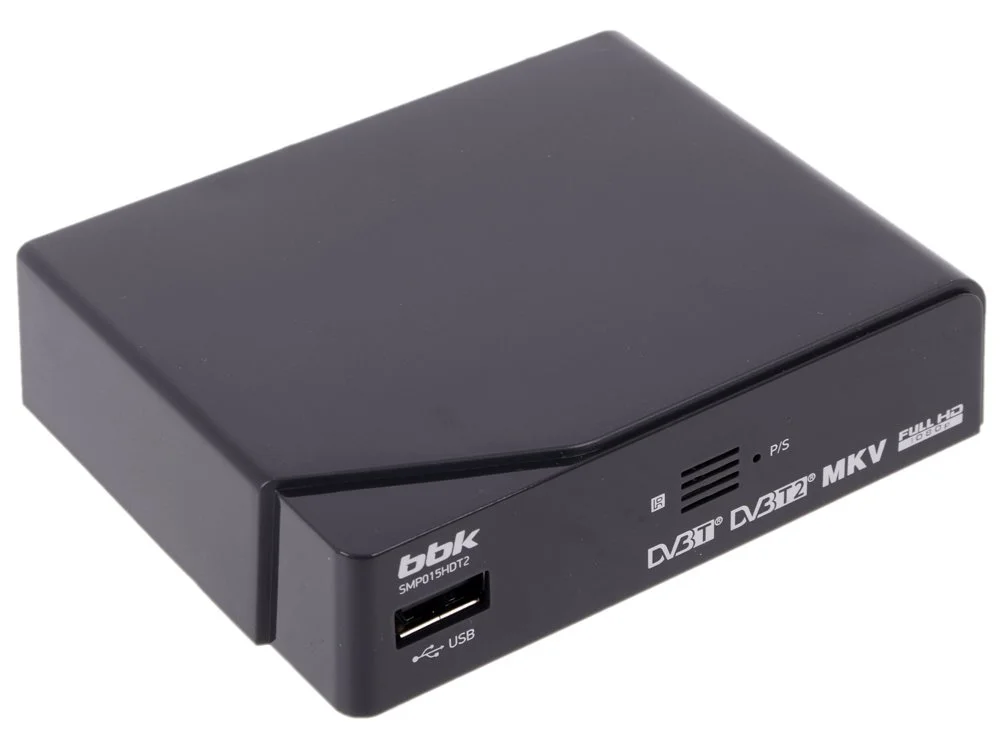 Модель BBK SMP015HDT2 принимает цифровые сигналы DVB-T2 и DVB-T, а также может транслировать изображение в формате высокой четкости HDTV с разрешением 1080p. Мультифункциональность этого ресивера обеспечена технологиями показа телетекста, телепрограммы, отложенной записи Timeshift. Также с помощью этой приставки можно производить запись транслируемых программ на внешнее совместимое USB-оборудование. Для удобства подключения порт размещен на фронтальной панели корпуса. Еще производитель предусмотрел функцию воспроизведения контента непосредственно с внешних носителей.