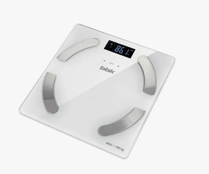 Напольные весы BBK BCS5001GM цвета слоновая кость — умные весы, которые отображают значение веса тела с детальной расшифровкой процентного содержания жира, воды, костной и мышечной массы, а также индекса массы тела и показателя калорий.