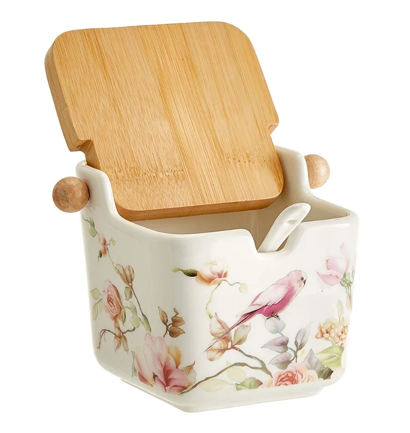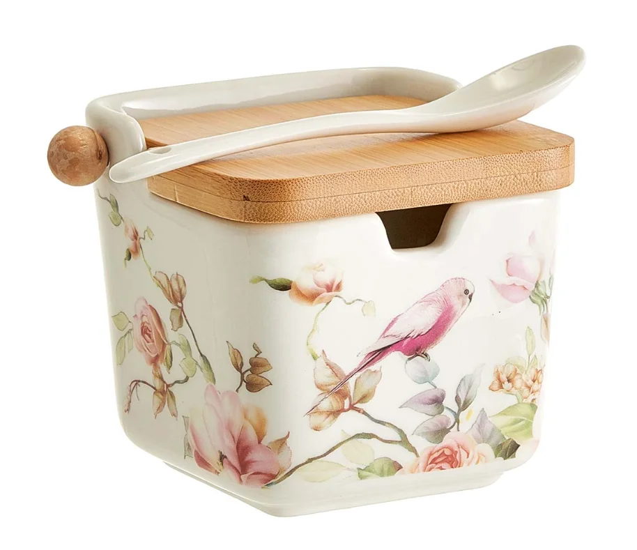 Судочки, банки, контейнеры, емкости » BEATRIX Банка для сыпучих продуктов с ложкой 300 мл Птички МЛ129Q Банка для сыпучих продуктов с ложкой "Птички" (300 мл) МЛ129Q НовинкаПроизводитель: BEATRIXМатериал: дерево керамикаТип: банкаОбъем: 0-0.9Наличие: На средуБонусы: 13 ₽ Код товара: 106055 Цена: 645 ₽ В корзину Описание Параметры Объем 300 мл Описание Банка для сыпучих продуктов фарфоровая с бамбуковой крышкой и фарфоровой ложкой Материалы: фарфор, бамбук Серия: Птички Фарфоровые элементы можно мыть в посудомоечной машине Бамбуковую крышку рекомендуется протирать влажной салфеткой или полотенцем Не использовать в СВЧ! Упаковка: цветная коробка Поделитесь ссылкой: