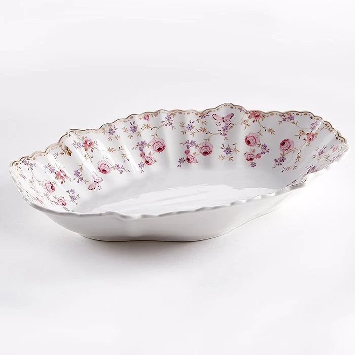 - Блюдо из высококачественного фарфора с декоративным рисунком и золотой обводкой