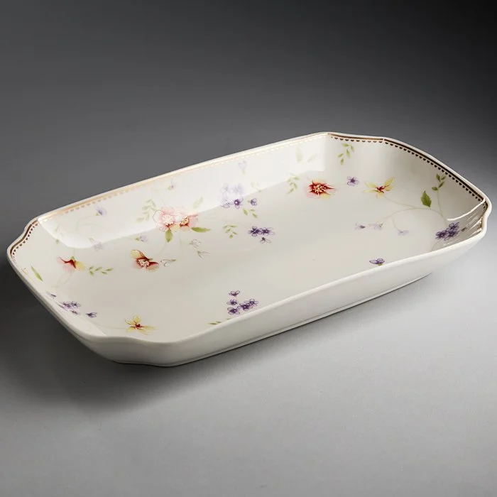 - Блюдо из высококачественного фарфора с декоративным рисунком и золотой обводкой
