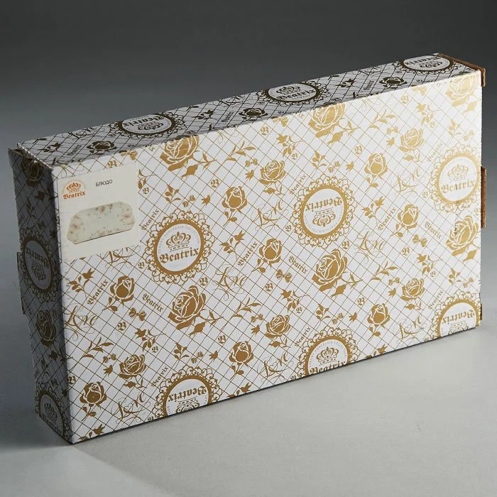 - Блюдо из высококачественного фарфора с декоративным рисунком и золотой обводкой