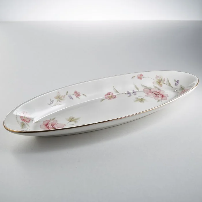 - Блюдо из высококачественного фарфора с декоративным рисунком и золотой обводкой