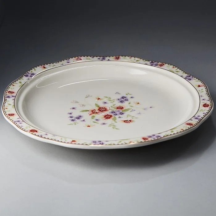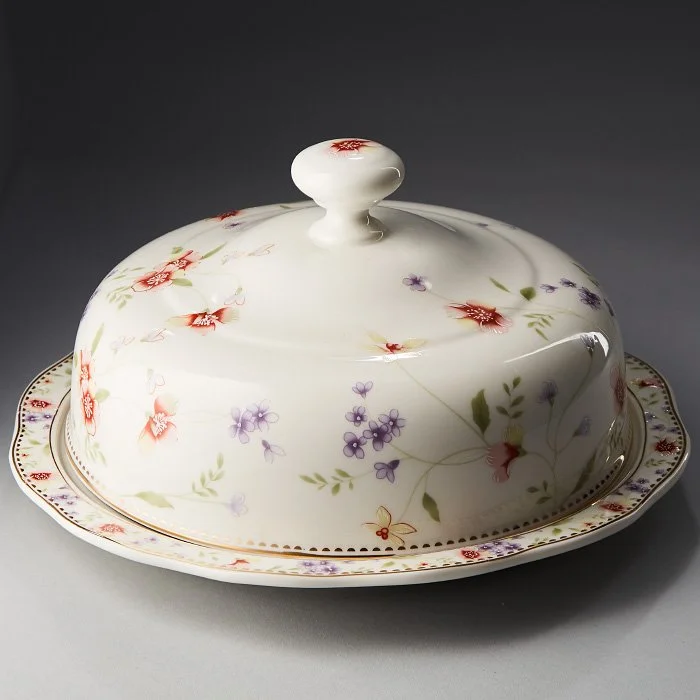 - Блюдо-блинница с крышкой из высококачественного фарфора с декоративным рисунком и золотой обводкой