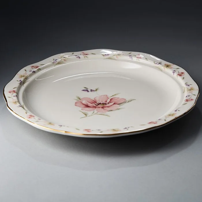- Блюдо-блинница с крышкой из высококачественного фарфора с декоративным рисунком и золотой обводкой