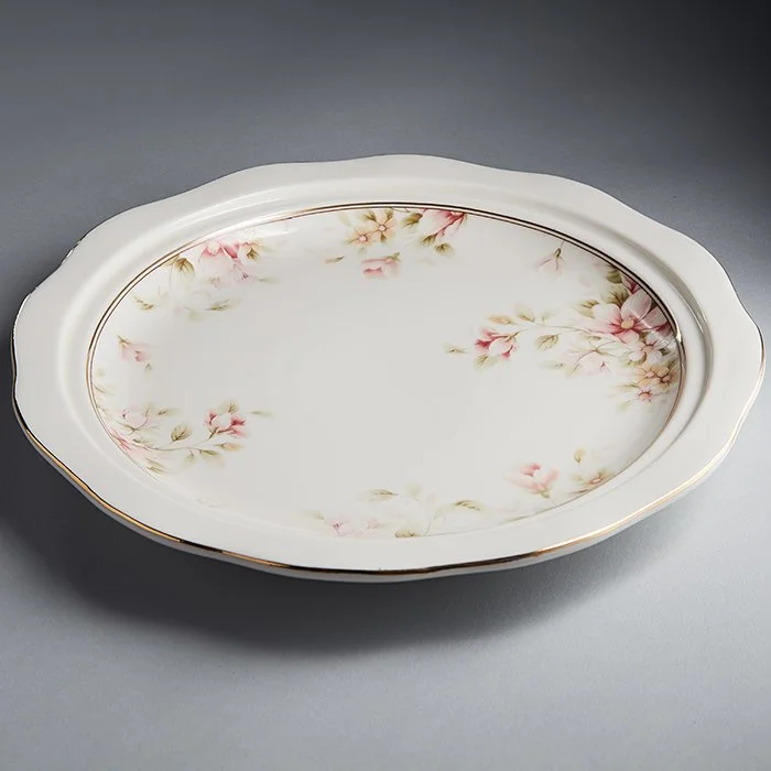 - Блюдо для блинов с крышкой из высококачественного фарфора с декоративным рисунком и золотой обводкой