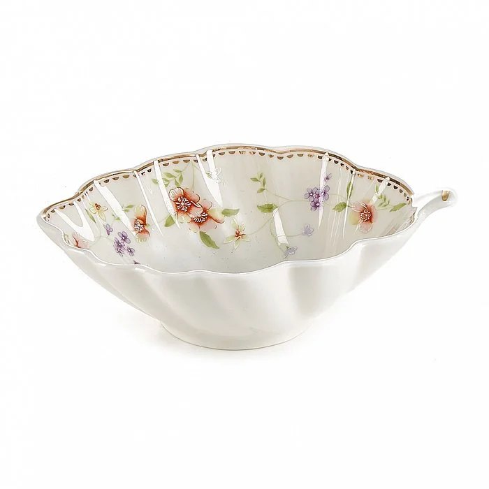 - Блюдо из высококачественного фарфора с декоративным рисунком и золотой обводкой
