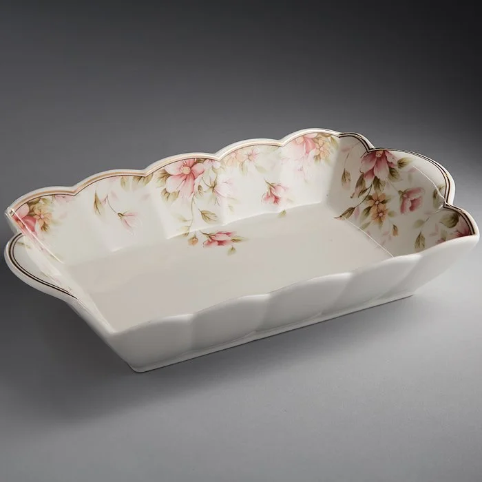 - Блюдо-шубница из высококачественного фарфора с декоративным рисунком и золотой обводкой