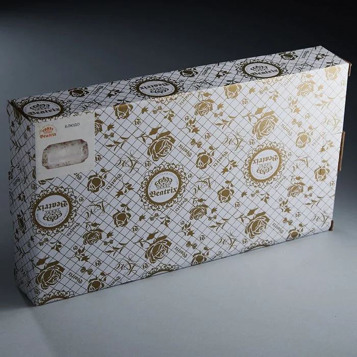- Блюдо-шубница из высококачественного фарфора с декоративным рисунком и золотой обводкой