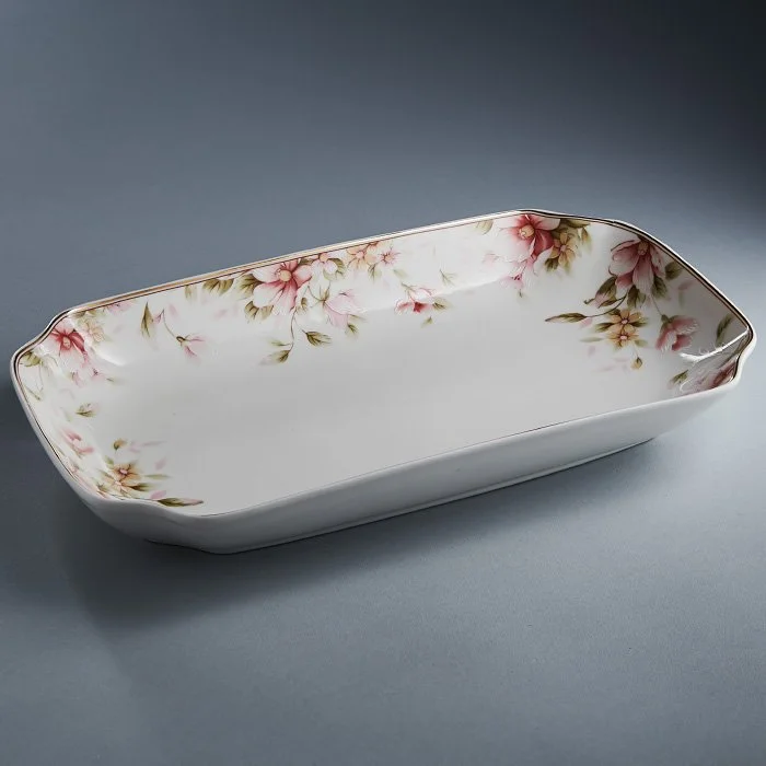 - Блюдо-шубница из высококачественного фарфора с декоративным рисунком и золотой обводкой